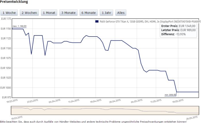 German colleagues report that European retail GeForce GTX Titan X reference design by Palit can be purchased for 989 euros, while in March the same graphics solution offered for 1149 Euro. Price reduction was nearly 14%, . We can not exclude that after the announcement of the GeForce GTX 980 Ti actual price of GeForce GTX Titan X will be also reduced.