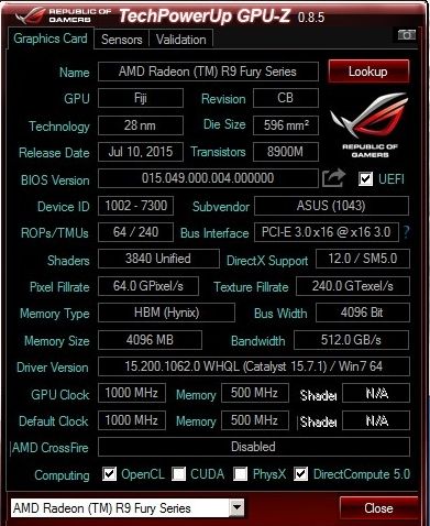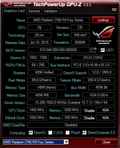 We have already reported that some copies of the Radeon R9 Fury transformed into an analog Radeon R9 Fury X . The only obstacle to the full realization of video card potential in this case is adequate unlock .