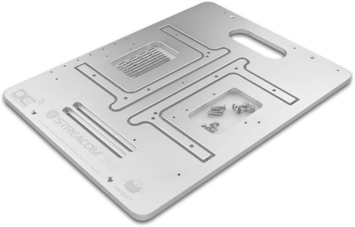 All the necessary cavity in milled aluminum plate dimensions 360 x 270 x 8 mm, weight of the whole structure up to 2.5 kg. It turns out strong enough and at the same time lightweight stand, which can accommodate the motherboard and other components of the desktop system, set up on the central processor and graphics card for tanks of liquid nitrogen .
