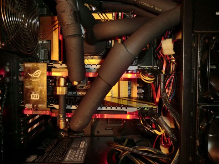 German overclocker Punk Sods decided to issue additional cooling liquid in the system  - with the help of the so-called Peltier modules.    The two graphics cards GeForce GTX 1080 and a processor Core i7-5960X, overclocked to 5.06 GHz, coexisted with the coolant temperature of 21.7 degrees Celsius.