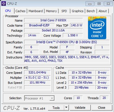 The engineering model Core i7-6950X (Broadwell-E) under liquid nitrogen was overclocked to 5201 MHz, video card were cooled in the same way. Related Products :