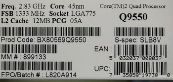 The processor core 2 Quad q9550 (2.83 GHz) with 2 X 6 MB cache in the second level had to pass to E0 stepping at the end of August, and the corresponding copies were already noted in retail. Let us recall that E0 stepping has a better overclocking potential,. On this stepping is also based the recently presented dual core 45nm processor core 2 Duo e8600 (3.33 GHz).